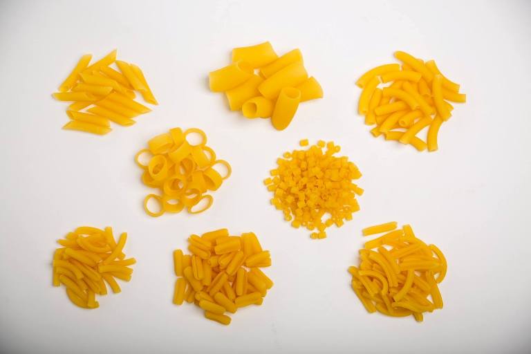 C’è e lo si ritrova in due delle otto trafile di Glutiniente. Nella sempreverde diatriba tra pasta rigata e liscia, le penne ed i maccheroni sono lisci fuori e rigati internamente. Una chicca che diverte, un desiderio compiuto di differenziarsi e creare.