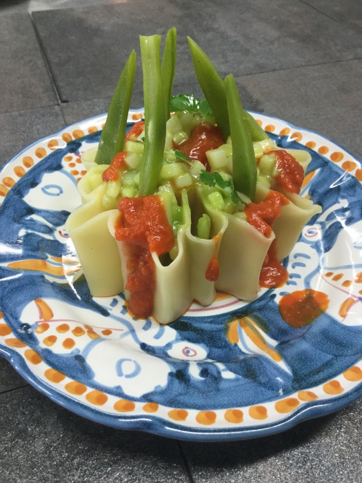 Una volta cotta la pasta comporre il piatto a piacimento.