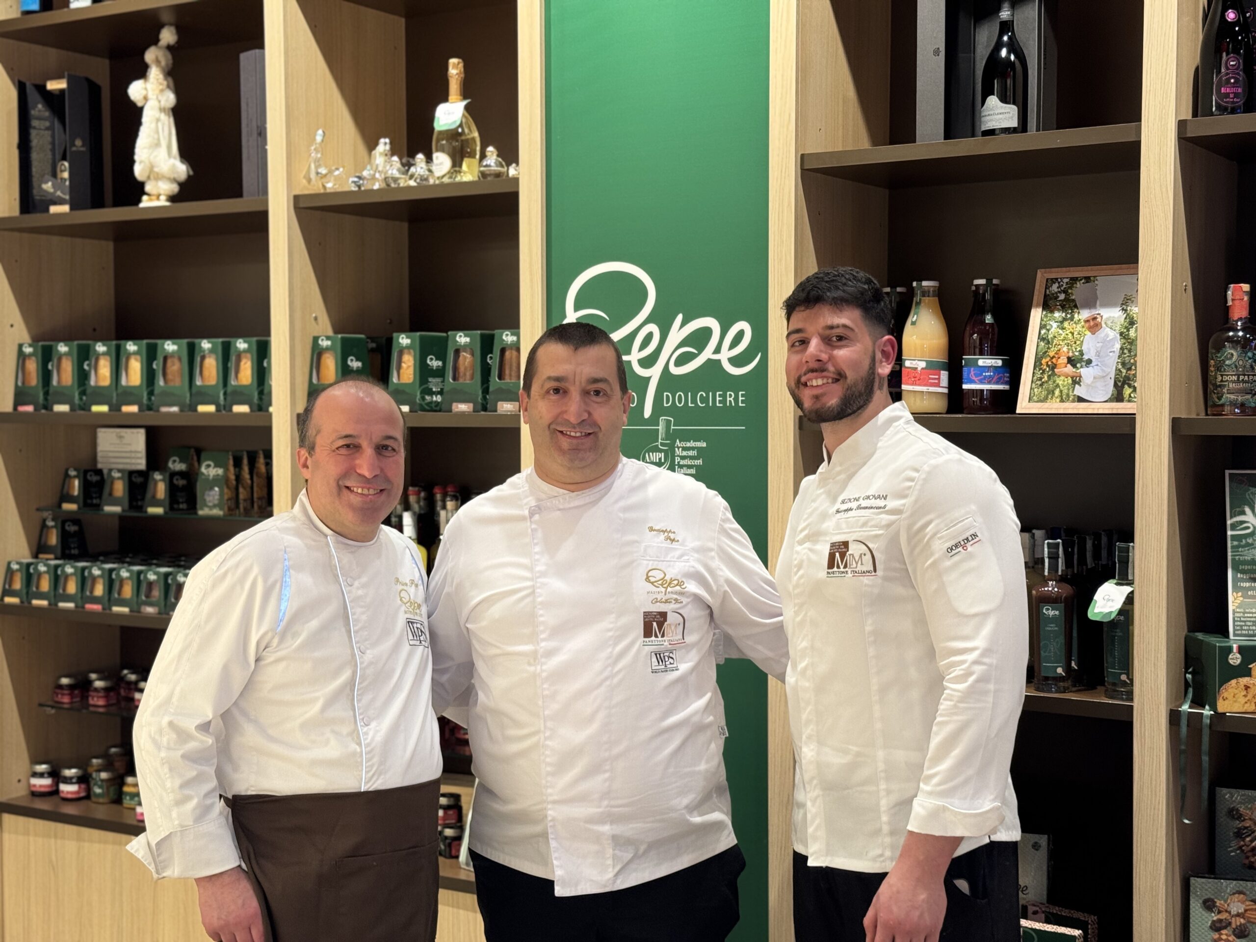 Il banco dolci è sempre più bello e accattivante grazie anche al giovane e talentuoso pasticcere Giuseppe Buoninconti, responsabile della pasticceria contemporanea, collaboratore della famiglia Pepe da circa 7 anni.