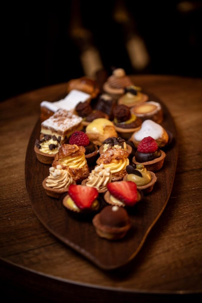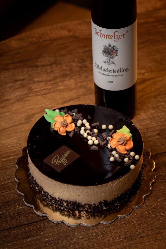 La visione di Paolo Poggiana introduce anche una componente enologica che definisce con decisione l’identità del locale. La carta dei vini — con Champagne, etichette alsaziane e numerose referenze italiane — non resta sullo sfondo, ma diventa parte integrante dell’esperienza. L’abbinamento tra dolce, salato e vino viene costruito con sensibilità e precisione, privilegiando armonia e profondità aromatica in un percorso che avvicina la pasticceria a una forma di gastronomia contemporanea, leggera e consapevole.