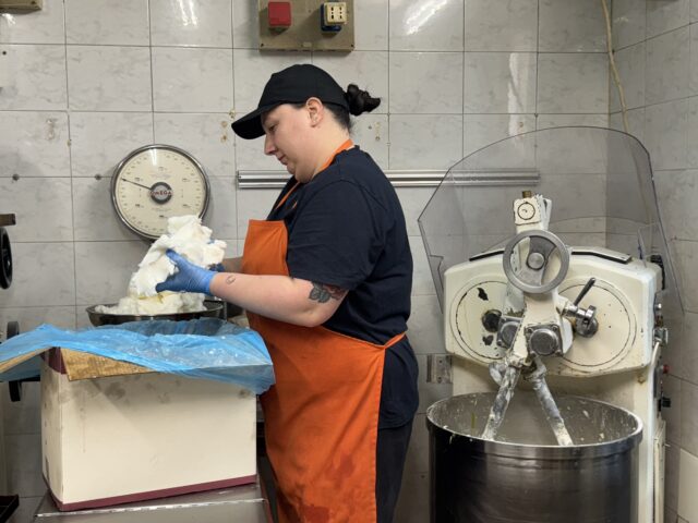 Sono andata lì per mangiare il leggendario pagnottiello, per osservare il processo di produzione e scoprire la ricetta. Ogni giorno vengono preparati circa 300 pagnottelli, un numero che raddoppia durante il fine settimana. Il piccolo laboratorio ha ancora in uso i vecchi macchinari come l’impastatrice e la maggior parte del lavoro è manuale; ad esempio il passaggio dell’inserimento della sugna nell’impasto, un procedimento tanto delicato quanto fondamentale per la riuscita del pagnottiello. La cottura avviene nei ruotini, quelli antichi, lasciati lì dopo la vendita del laboratorio. Il risultato è una combinazione di morbidezza e sapore, e uno solo non è sufficiente a soddisfare la voglia di mangiarlo. Raffaele ha effettuato lievi modifiche alla ricetta originale, mirate a garantire un prodotto di altissima qualità, adeguandolo agli standard contemporanei.