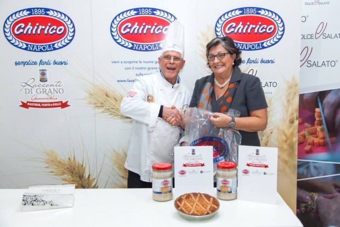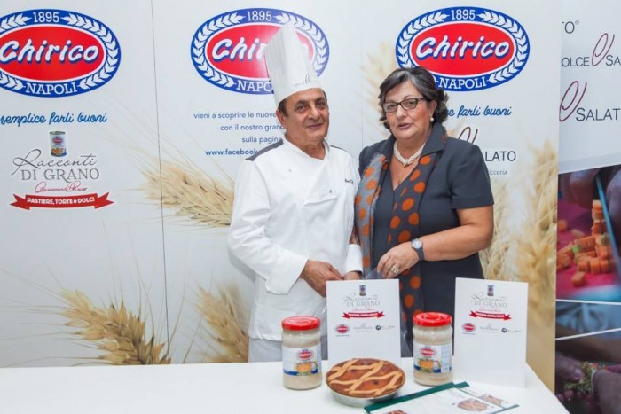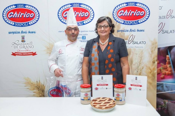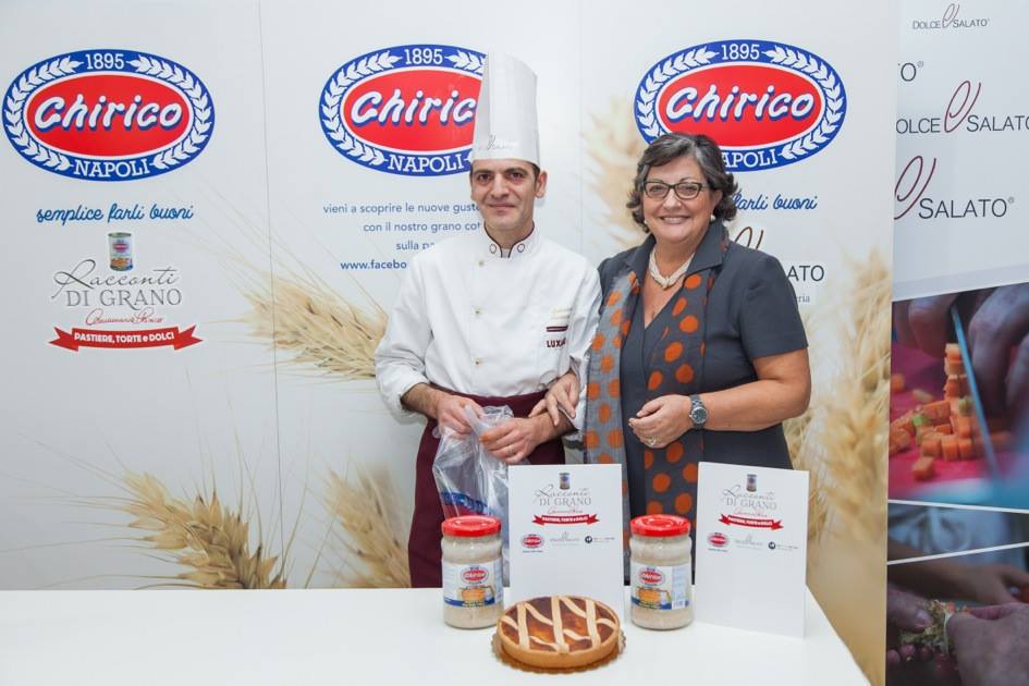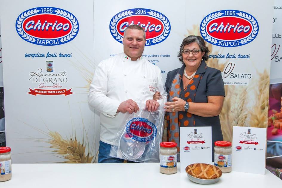 Condivisione di tradizioni, belle emozioni, forte partecipazione e grande entusiasmo per la prima edizione de “La Nostra Pastiera Racconti di Grano”. Evento di strepitoso successo dedicato alla pastiera, il dolce principe della pasticceria napoletana che viene preparato durante il periodo pasquale, ideato e organizzato da Mario Palma, amministratore unico Chirico e dagli chef Giuseppe Daddio e Aniello di Caprio, titolari della Scuola Dolce e Salato di Maddaloni e moderato dal giornalista Luciano Pignataro. A realizzare e a raccontare la pastiera venti pasticceri, tra cui tanti giovani, ognuno con la sua interpretazione, il suo segreto e la sua tecnica arrivati alla scuola Dolce&Salato dalla Campania ed oltre regione. Ad affiancare i venti artigiani dell’arte dolciaria, la signora Annamaria Chirico, che ha preparato la tradizionale pastiera napoletana seguendo l’antica ricetta di famiglia. La degustazione delle venti pastiere è stata accompagnata dal cocktail “o’ Chiric chic” con infuso di limoni dell’Antica Distilleria Petrone, preparato dagli allievi del corso formativo “Bartender” insieme al loro docente Roberto Onorati.