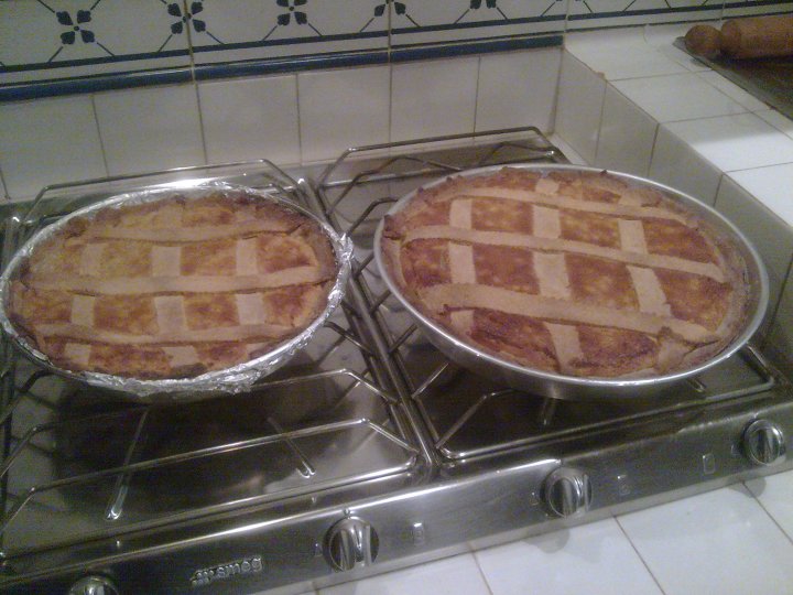 x la frolla: 500 g.farina-150 g. di zukkero- 3 rossi d'uovo + 2 uova intere- 1 pizzico sale-150 g. di sugna -scorza grattugiata di 1 limone.