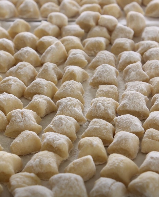 Antonietta la confeziona giornalmente, e qualche volta anche più volte al giorno, per poter soddisfare le numerose richieste. Il suo laboratorio consta di attrezzi e macchinari indispensabili per alcune preparazioni, come ad esempio la sfogliatrice ( solo alcuni impasti sono tirati a mano con il mattarello ) e quella per determinati formati. La pasta una volta pronta, asciuga a temperatura ambiente con un tempo variabile secondo la percentuale di umidità dell’aria.