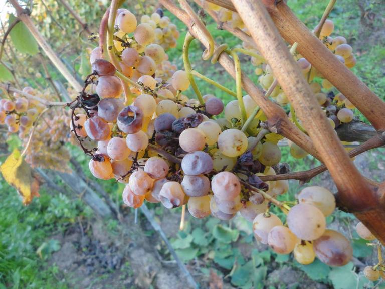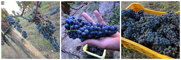 Tenuta Fonzone, il vecchio clone Aglianichiello, il clone più comune di Aglianico e uva pronta per la pigiadiraspatura
