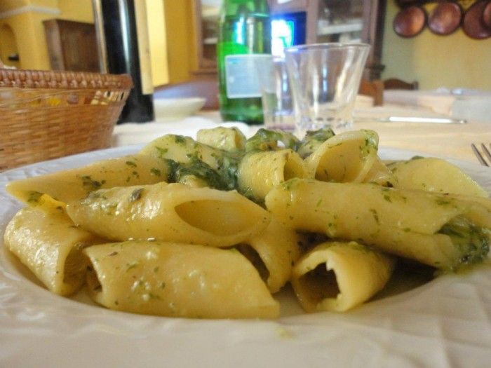 A cottura “al chiodo”, versare la pasta nella padella dove avevamo precedentemente adagiato il pesto e spadellare energicamente. Il piatto è pronto, attenzione alla quantità di pasta se per caso vi fosse malauguratamente venuto in mente di invitare a tavola Nicola Campanile o il sottoscritto…