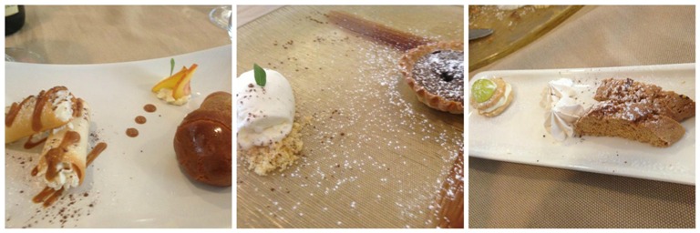 Pensando a te, babà e cannolo, gelato di bufala e tortino di nocciola di Giffoni e piccola pasticceria