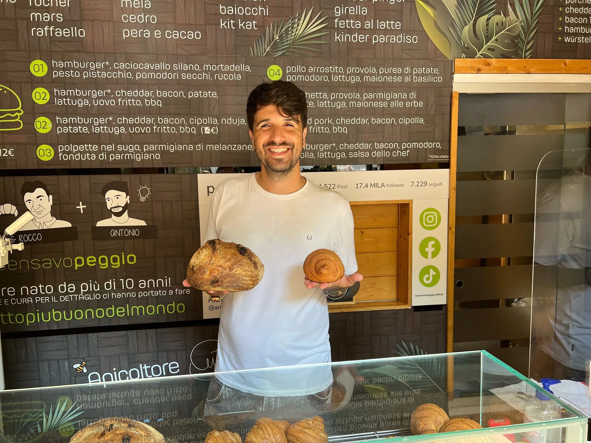 Praia a Mare, una delle prime località turistiche che si incontrano superando la Campania e la Basilicata. Qui risiede Antonio Martino, giovane imprenditore dai molteplici talenti. È una personalità forte, educata, gentile e decisamente umile. Tuttavia, tra tutte le sue qualità, spicca una particolarmente importante: il suo talento nella panificazione. Antonio, trentenne vincitore del Caputo Bread Project 2022, si dedica al mondo culinario e della panificazione da circa 10 anni. Nel 2015, ha aperto il suo brand “PensavoPeggio”, che oggi vanta due sedi: una per il pane, i panini e i croissant, e l’altra per i poké. L’iscrizione sul suo locale recita: “Antonio Martino fa i croissant più deliziosi del mondo“, e anche se può sembrare un’affermazione molto assoluta, in parte sembra proprio essere vera. Se si considera il duro lavoro di Antonio, in una regione delicata del sud Italia, merita sicuramente il massimo riconoscimento per il risultato ottenuto.