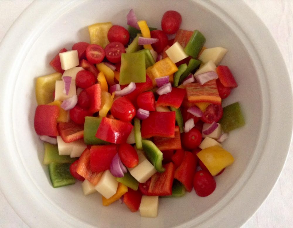 Il grosso del lavoro, dopo aver lavato tutti gli ingredienti, consiste nel tagliare della stessa dimensione tutto quel che finirà in pentola, considerando che questo è un aspetto facoltativo, credo che questa preparazione casalinga rientri a pieno titolo, come ho evidenziato nel titolo, tra le ricette veloci, i colori sono valore aggiunto, non ho aggiunto altro se non, in quantità più o meno uguali: