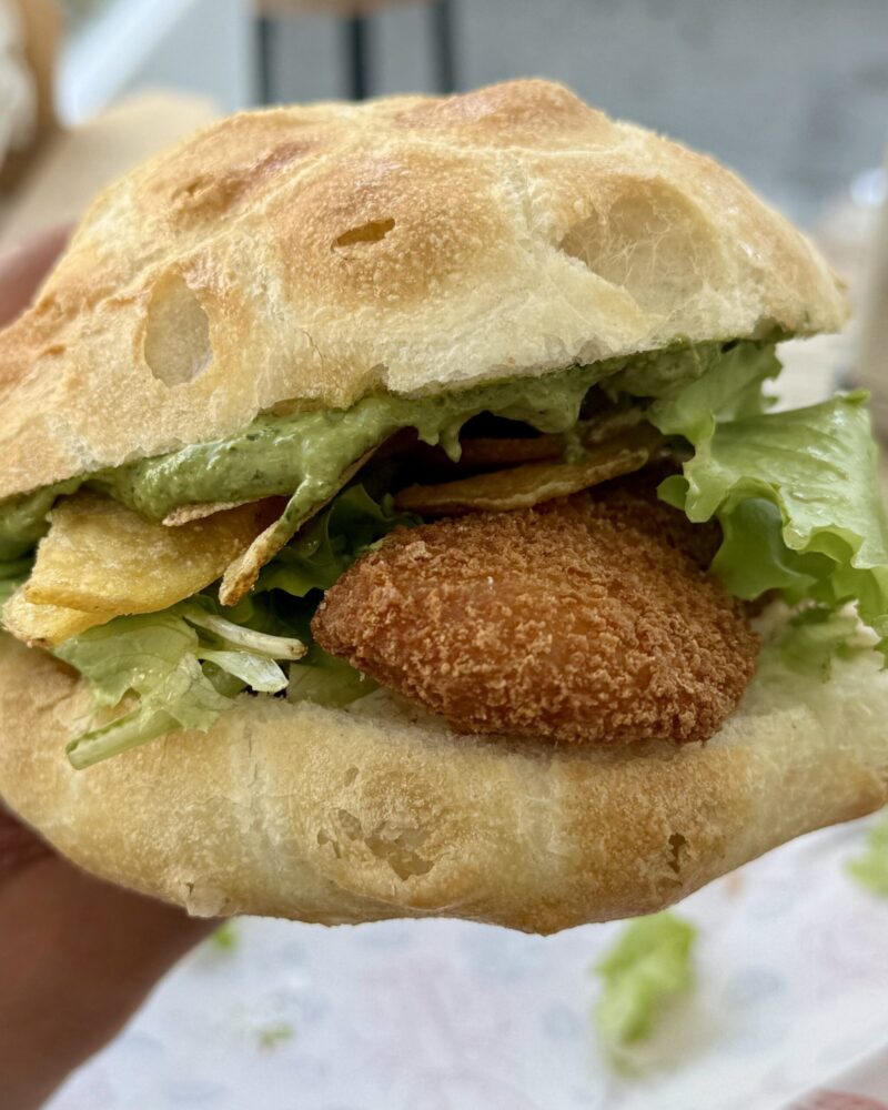 Perché, nonostante l’aspetto da brutto anatroccolo, al primo morso è stato chiaro: questo era probabilmente uno dei panini più buoni mai mangiati da Pescaria.