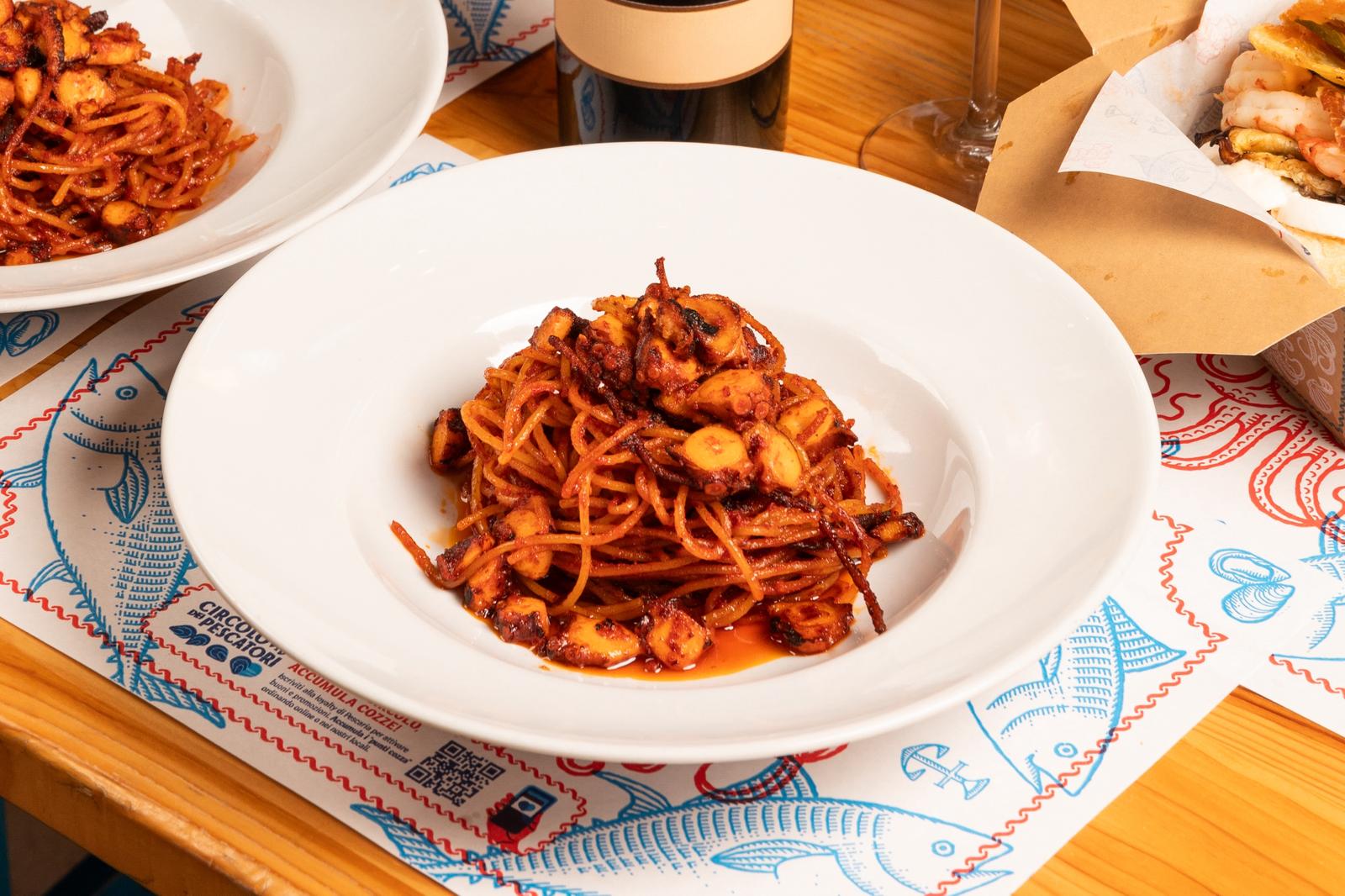 Pescaria non è solo panini di mare, ma anche magnifiche tartare di pesce freschissimo, insalate che coniugano pesce, ortaggi e frutta anche esotica e in alcune sedi è possibile gustare l’Assassina di Mare, l’iconico piatto barese con lamelle di polpo e i celeberrimi spaghetti con pesto di limoni e tartare di gamberi dello chef Peppe Guida.