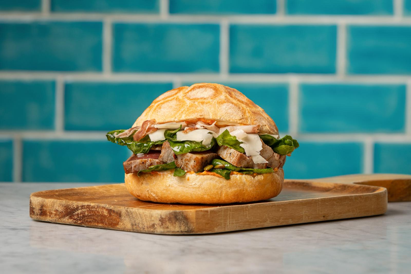 Il primo panino pensato dallo chef Guida è stato il Polperone, ispirato ai peperoni arrostiti conditi con oliva e capperi, classica farcitura dei panini estivi. In questo caso il panino viene interpretato con il polpo fritto, mozzarella affumicata, pesto di basilico in aggiunta all’elemento base che restano i peperoni. Un successo al primo morso che ha conquistato il pubblico di tutte le sedi.