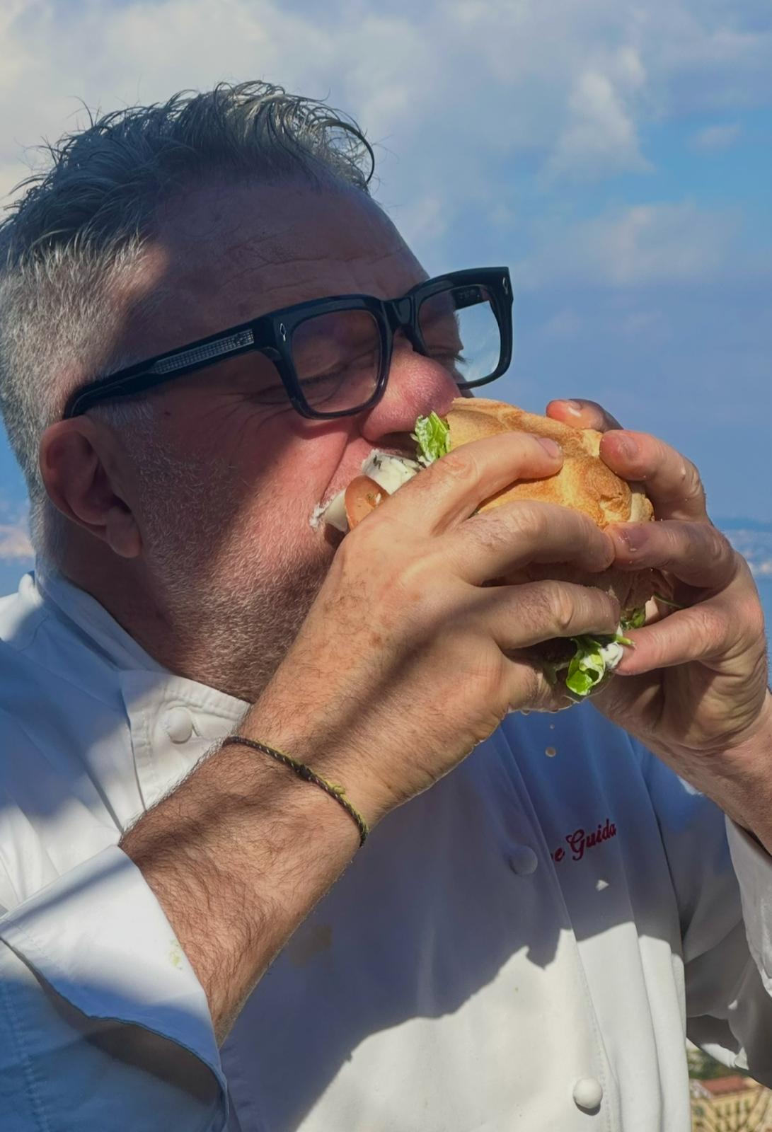 Abbinamenti “colti” che seguono le rotte del Mediterraneo, esplorano l’entroterra e guardano costantemente all’orto: tutta la filosofia di Peppe Guida racchiusa in un panino.