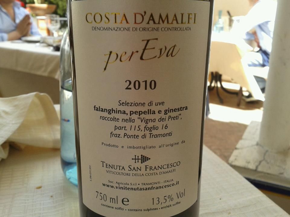 La beva è verticale, sapida, senza mediazioni di sorta al palato: siamo lontani anni luce dia vini bianchi beverini della Costiera prodotti sino a una decina di anni fa. Invece il Per Eva è destinato a lunga vita grazie a questo impianto ben costruito da Carmine Valentino.