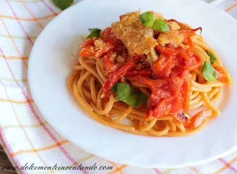 Pinot bianco del Veneto, Spaghetti al peperoncino con tortino di peperoni e pomodoro al forno Spaghetti al peperoncino con tortino di peperoni e pomodoro al forno 5 Maggio 2017 0 commenti