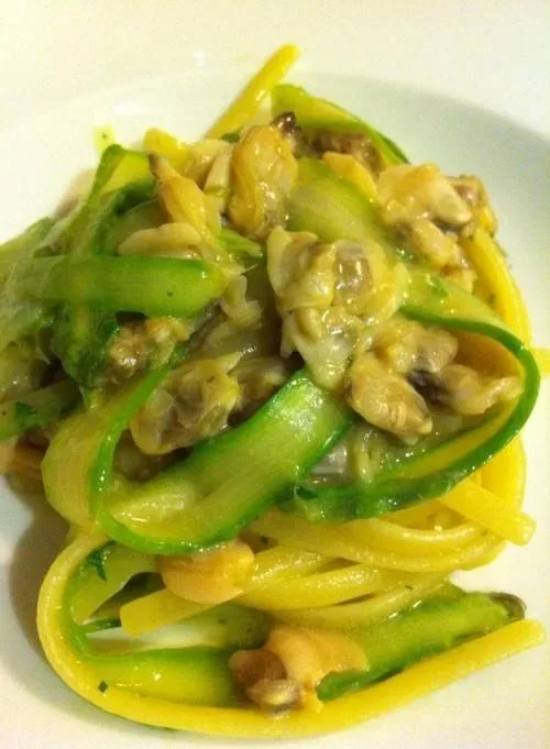 asparagi, luciano pignataro wineblog, lupini, napoli, olio extravergine di oliva, pasta, patròn stefano giancotti, ricette, Ricette di mare, ristorante veritas, verdure, vongole Linguine con vongole, lupini e asparagi 15 Maggio 2013 0 commenti