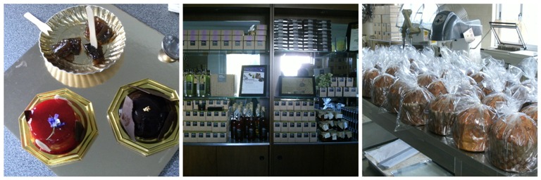 Pietro Macellaro, monoporzioni di dolci, prodotti dolciari in esposizione e panettoni appena imbustati