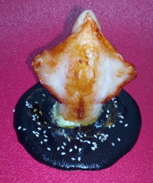 Calamaro al suo nero, fior di ricotta e broccolo cilentano al sentore di peperoncino di Antonio Morabito