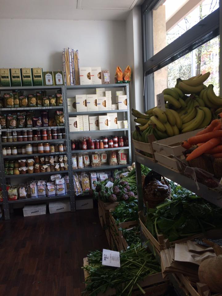 Siamo in zona Tuscolana, in un locale di 40 metri quadri che è una sorta di emporio alimentare. Come diavolo fanno Giorgio e Giulia a farci entrare di tutto non si può spiegare. Sarà anche questo un miracolo della biodinamica.