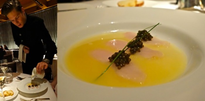 Un ristorante è caro se quando esci pensi al conto e non a quello che hai mangiato. Uscendo da Gotham ho pensato al conto e alla domanda verità, ossia: ci torneresti? , la risposta è forse no ma lo consiglio. Il motivo è che Gotham, aperto dal 1984, con l’arrivo di Alfred Portale è stato un riferimento assoluto per l’alta cucina a New York, tra i protagonisti che hanno dominato la scena per oltre vent’anni e mietendo riconoscimenti da ogni dove. Nato nel 1954 a Buffalo, di origini italiane, Portale si è fatto le ossa in Francia lavorando giovanissimo da Jacques Maximin, Michel Guérard dai fratelli Troisgros. A soli 31 anni entra nelle cucine di Gotham e diventa l’alfiere della Nuova Cucina Americana vincendo, tra l’altro, l’ambito riconoscimento di cuoco dell’anno alla James Beard Foundation.