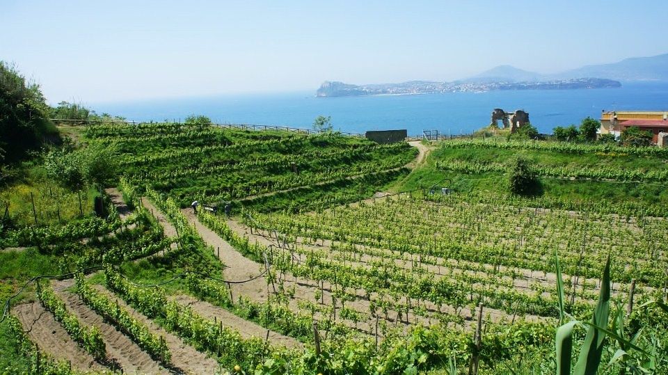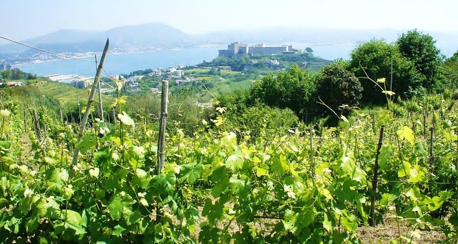 I terreni, nel cuore dei Campi Flegrei, sono in piccoli appezzamenti sparsi qui e lì tra Monte di Procida, Bacoli e Pozzuoli. La vista stupisce sempre più di vigneto in vigneto con quel mare ad un soffio in cui è un attimo tuffarsi. Qui siamo ad un’altezza tra i 100 e i 150 metri sul livello del mare. Di tanto in tanto s’incontrano viti antiche ed in generale le piante hanno un’età media di 30-40 anni. I terreni sono di tipo sabbioso- vulcanico con presenza di lapilli. Nei pressi del Lago Fusaro sono più argillosi e da qui lo spumante di falanghina “ Brezza Flegrea”. Scegliamo per la degustazione il piedirosso dei Campi Flegrei 2009.