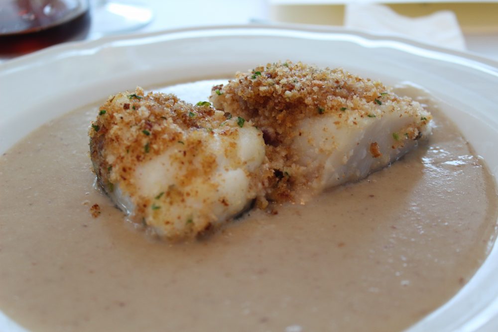 Il secondo pure molto buono: Baccalà gratinato con pane ed olive (sublime) su un letto di cremoso di fagioli principessa.