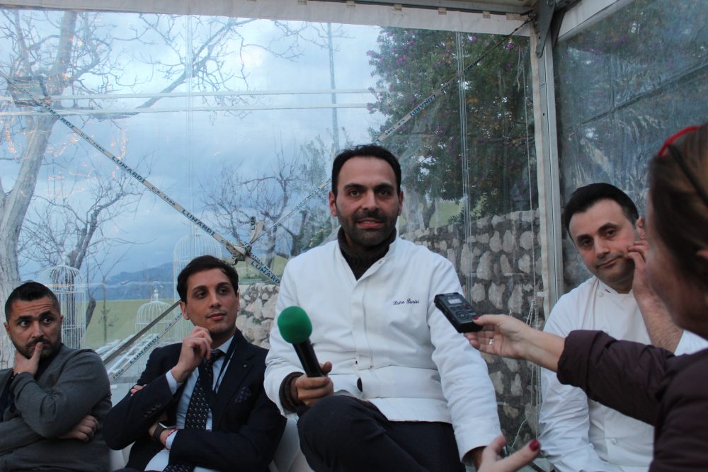 Cosa spinge un cosiddetto “Personaggio da seguire” a rinunciare a lavorare nei posti più esclusivi, di lusso ed importanti del mondo? Me lo sono chiesto quando ho iniziato a seguire e ad appassionarmi al lavoro dello chef Pietro Parisi. In realtà conoscendolo un po’, capendo il suo pensiero, il suo mondo, la sua forte realtà non è stato poi cosi tanto difficile capire le sue scelte. Pietro si è formato alla corte di “mostri sacri” della cucina internazionale, quali Alain Ducasse e Gualtiero Marchesi. Dopo varie prestigiose esperienze europee (Italia, Francia e Svizzera) ed una negli Emirati Arabi al “Burj al-Arab” (uno degli hotel più lussuosi al mondo), Pietro decide di investire nella sua terra, ricca di biodiversità, cultura e territori da scoprire e raccontare. Inizia così , nel 2005, inizia un percorso che è praticamente tutto in salita. Difficoltà Pietro nel suo cammino ne ha incontrate e non poche, e non è tutto rosa e fiori quello che si vede, ma nonostante questo la sua strada è tutta in salita perché lui ha una grande dote, che a molti manca, la forza e la voglia di combattere per quello in cui crede. Padre di una bambina di 4 anni e marito di una donna che è la sua spalla più grande, Parisi affronta tutte le sue giornate con sorriso ed energia per mandare avanti tutte le attività che gestisce e che devono necessariamente essere curate, giorno dopo giorno. Il 12 gennaio, per Pietro è stata una giornata molto importante. Con la collaborazione di Alfio Tesio hanno organizzato un’ Educational Tour riservato a 30 giornalisti rappresentati della stampa internazionale. All’attenzione delle testate più importanti al mondo Pietro è riuscito a mostrare una parte della Campania che mette il sorriso, che fa bene… una parte che si dà per scontata perché forse siamo tutti troppo impegnati a preoccuparci d’ altro. Alle 10.30 ci siamo visti tutti al Caseificio L’Oro bianco di Sarno dove ad attenderci c’erano le ragazze del personale che hanno mostrato un po’ della filièra produttiva ed hanno dato informazioni preziose sul prodotto più famoso della Campania “La Mozzarella di Bufala Campana Dop”. la prima domanda bomba che è stata mossa è stata «Qui siamo nella famosa terra dei fuochi. La roba è sicura?»