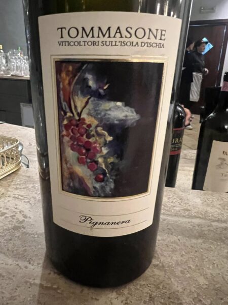 Pignanera di TommasoneImmaginiamo, immaginano, Ischia specializzata in vino bianco e cucina di mare. Magari negli ultimi anni è sempre più così, ma l’anima vera dell’Isola Verde vuole il rosso da spendere sul suo piatto iconico, il coniglio all’ischitana. Ecco perchè il blend di Tommasone, bevuto in magnum su un grande pranzo a base di capretto da Bianca Mucciolo ad Aquara, ha fatto la sua bella figura. A guidare la cantina dal 2009, è Lucia Monti con il marito Giuseppe Andreoli. Enologa e unica donna produttrice di vino a Ischia, Lucia rappresenta la quarta generazione di una famiglia di vignaioli. Dolce e determinata ha fatto questo vino, ottenuto con uve coltivate a 200 metri in Tenute Coste a Lacco Ameno, a sua immagine e somiglianza. Entra morbido grazie ai tannini del Montepulciano, ma si rivela prezioso e deciso quando deve affrontare un piatto di tradizone contadina e lascia il segno.