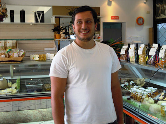Il banco di vendita dei prodotti antistante il laboratorio di produzione del 'Caseificio Antonio Jemma'