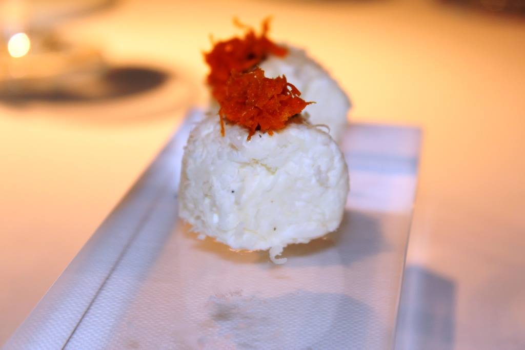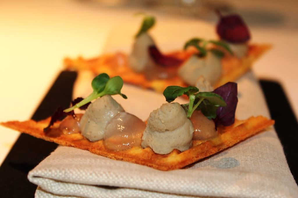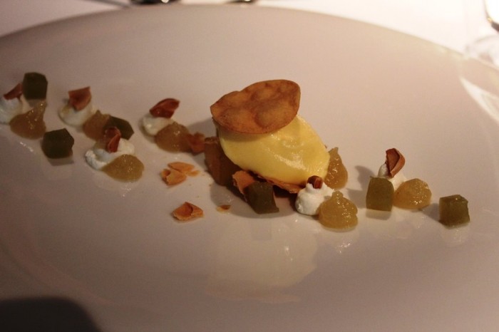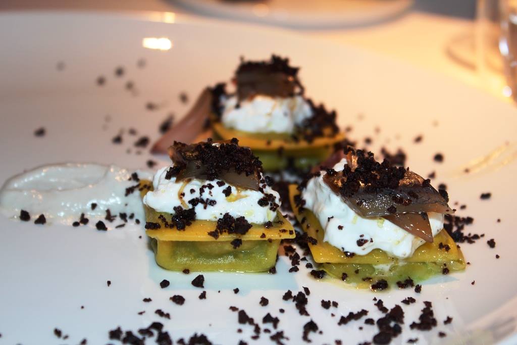 1) I divertissement iniziali. Un misto di tecnica e di materia, dove si osa, ma senza strafare, dove c’è spazio per la tradizione, tipo le Ferratelle abruzzesi, la voglia di sperimentare tecniche e abbinamenti, ma anche di proporre dei piatti rassicuranti e golosi come le tre A. Un mix riuscito che convince, i pani caldi di diversa fattura completano l’offerta, il tutto molto interessante.