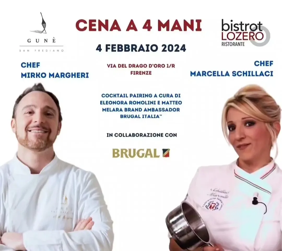 Mirko Margheri (ristorante Guné) e Marcella Schillaci (ristorante Bistrot lo Zero) incroceranno le padelle in una cena a 4 mani in data 04 Febbraio in collaborazione con Brugal, produttrice storica e multipremiata di Rum dominicano, importato in italia da Velier Spa, con la presenza straordinaria del Brand Manager Italia Matteo Melara. Evento da non perdere.