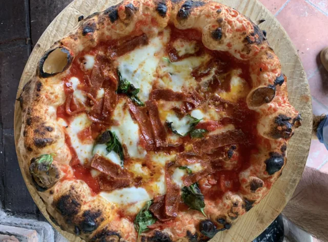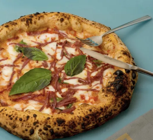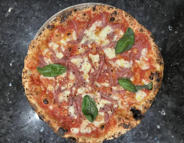 Diavola: pomodoro San Marzano Dop, salame piccante ventricina del vastese, fior di latte di agevola, basilico, olio extravergine Evo.