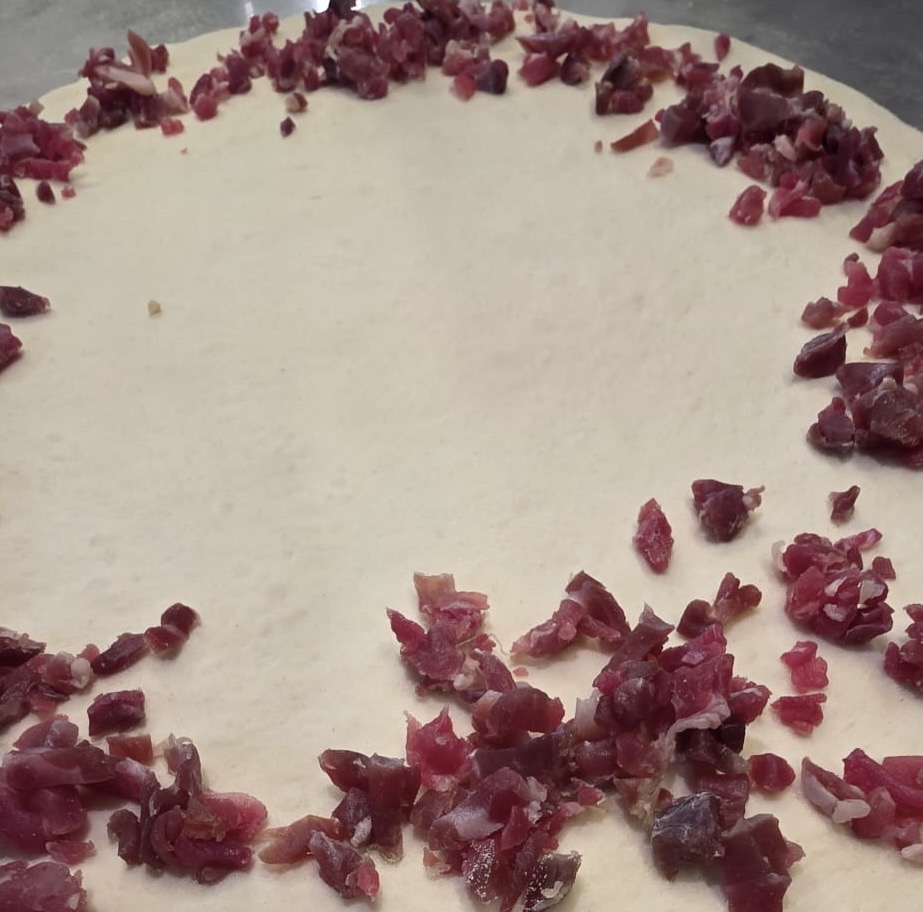 Distribuire i salumi sul bordo del disco – Pizza Casatiello di Gennaro Catapano 4/4/2026 Torna a: Pizza Casatiello di Gennaro Catapano Pizzeria Jolly in abbinamento Pietrafumante Rosé Casa Setaro Distribuire i salumi sul bordo del disco -Gennaro Catapano Pizzeria Jolly← PrecedenteSuccessiva →