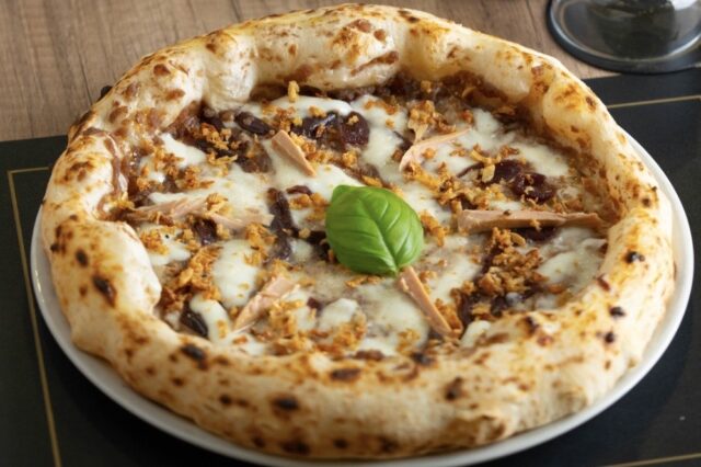 Lo Scalillo Asprinio d’Aversa di Drengot, il cui nome omaggia la prestigiosa famiglia di Rainulfo, primo conte di Aversa, simboleggia un profondo legame con le radici di un territorio ricco di storia. Fondata nel 2015, l’azienda vitivinicola Drengot è un viaggio nel tempo, che si manifesta attraverso vini autentici e coinvolgenti. Alberto Verde, che rappresenta l’espressione moderna di una tradizione imprenditoriale aversana, porta con sé una passione ardente per l’agricoltura e la storia, un percorso che ha inizio tra i vigneti del nonno, dove il profumo dell’Asprinio si mescola con il canto dei viticoltori intenti a raccogliere l’uva a mano. Tra le etichette di punta della cantina spicca Scalillo, un Asprinio d’Aversa prodotto da Alberate Aversana, una varietà candidata a diventare Patrimonio dell’Umanità dell’UNESCO. Caratterizzato da profumi di frutta fresca e note agrumate, uniti a freschezza e sapidità distintive, Scalillo si propone come l’accompagnamento perfetto per la pizza Tonno e Cipolle. Questa combinazione esalta la dolcezza della cipolla di Tropea caramellata, valorizzando al contempo il gusto delicato del tonno.