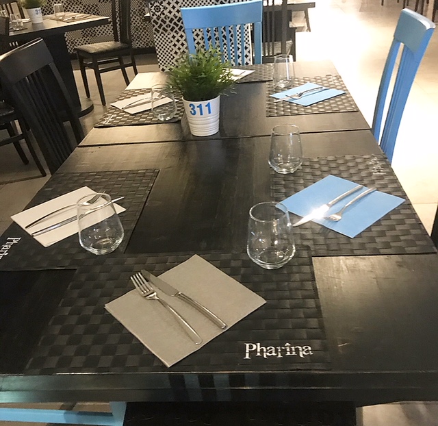 L’offerta del menù pizza è ampia e nell’attesa della realizzazione suggerisco di degustare preparazioni della cucina come i supplì, i crocchè, le frittatine, le montanare, le polpette, le bruschette, il baccalá o il tagliere Pharina composto da salumi, formaggi e confetture. Anche le carni di provenienza locale sono degne di assaggio, sono fornite dalla storica macelleria Squeglia di Marcianise. A tal proposito il panino ( il cui pane bun è preparato da Vincenzo ) con hamburger di manzo tagliato a punta di coltello, e arricchito dalla crema di cacio e pepe e anelli di cipolla croccanti, merita di essere degustato.