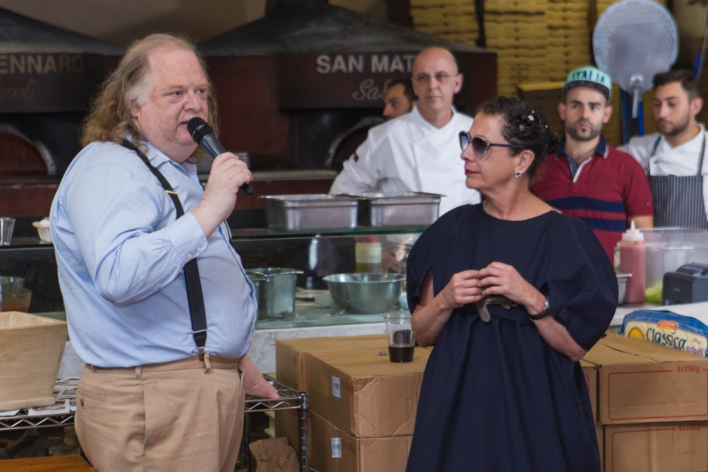 A sugellare l’altissimo profilo della manifestazione, la presenza di Jonathan Gold, critico culinario del Los Angeles Times, incoronato da un premio Pulitzer per la critica nel 2007. Alla folla di operatori del trade, media e VIP partecipanti Franco Pepe ha offerto uno spaccato sulle sue origini e sull’evoluzione della sua pizza, attraverso immagini, materiale video ed un racconto intimo e appassionato su quello che e’ stato ed e’ il suo percorso. Ai partecipanti ha illustrato il suo legame con il territorio, il rispetto per la sua terra e per gli straordinari prodotti che con totale simbiosi sposano il suo impasto per dare vita ad un’esperienza sensoriale magica. Nancy Silverton e Jonathan Gold hanno raccontato esperienze personali e aneddoti legati alla pizza e ai loro viaggi in Italia, esprimendo una forte e sincera ammirazione per Franco Pepe. Con grande curiosita’ e simpatia Nancy e Jonathan hanno colloquiato e intervistato tutti i maestri pizzaioli partecipanti. La degustazione ha permesso al pubblico di assaggiare 16 pizze, 4 per ciascun pizzaiolo. Extraordinary Italian Pizza Day ha centrato l’obiettivo creando una importante piattaforma promozionale per l’autenticita’ culinaria italiana, trasportando il pubblico partecipante, ad ogni assaggio, nei luoghi che rendono le produzioni italiane autentiche uniche ed inimitabili. Le degustazioni sano state accompagnate da Acqua Filette e da Franciacorta La Montina.