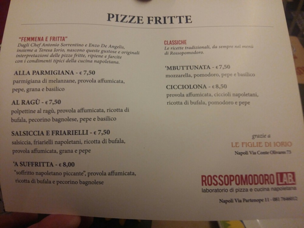 Si chiama “Femmena e Fritta” ed è la pizza fritta (in 4 versioni) creata dalla maestra pizzaiola Teresa Iorio (prima donna vincitrice del Trofeo Caputo- Campionato mondiale dei pizzaioli) con gli chef di Rossopomodoro Antonio Sorrentino ed Enzo de Angelis.