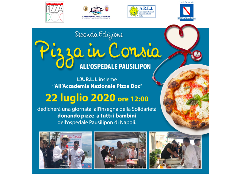 L’Accademia Nazionale Pizza DOC in collaborazione con l’ A.R.L.I – Associazione Regionale Leucemie Infantili Onlus, con il patrocinio della Regione Campania, daranno vita per il secondo anno consecutivo l’evento dal titolo “Pizza in Corsia”, un’intera giornata dedicata ai bambini ricoverati presso il nosocomio partenopeo. L’appuntamento si svolgerà il reparto di Pediatria Oncologica del Pausilipon grazie alla collaborazione dei docenti del Team Accademia.