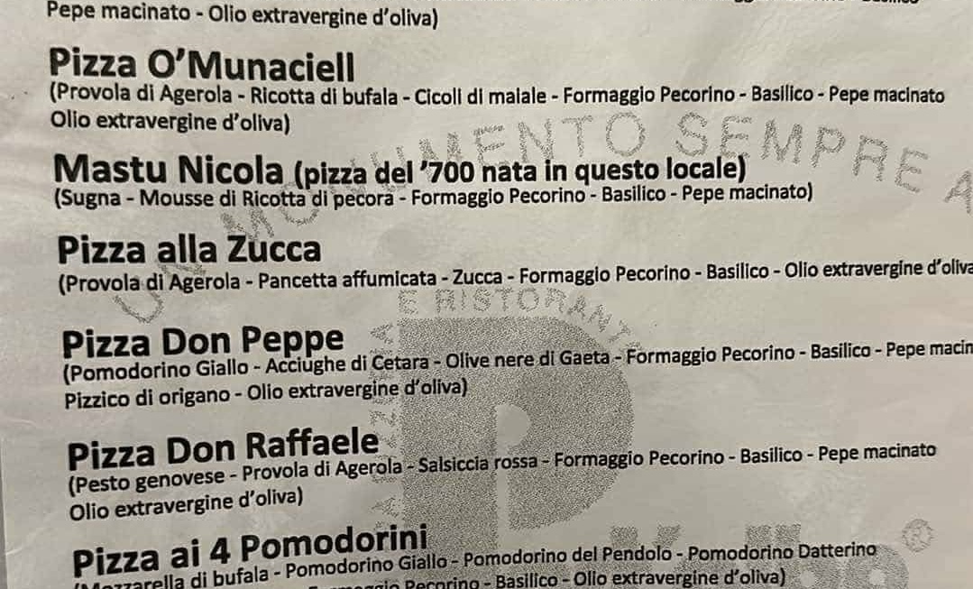 Menù Antica Pizzeria Port’Alba 1738 12/12/2024 Torna a: Pizza Mastunicola, la più antica di Napoli: gli indirizzi dove mangiarla Menù Antica Pizzeria Port’Alba 1738← PrecedenteSuccessiva →