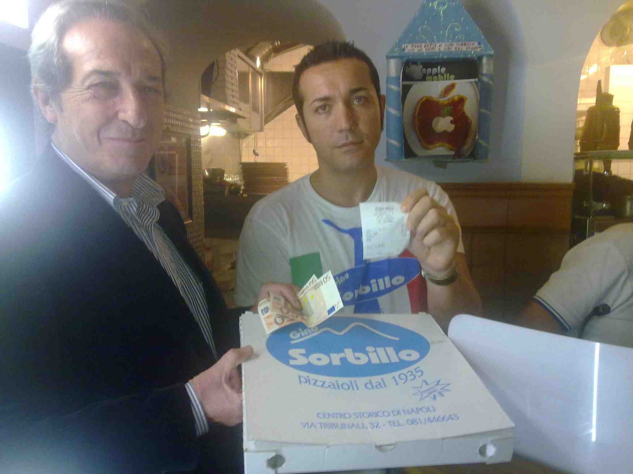 “Già un primo Deputato ha dovuto pagare la pizza 100 euro da Sorbillo. Sabato 29 Ottobre intorno alle 22.30 – raccontano il commissario regionale dei Verdi Francesco Emilio Borrelli e lo speaker radiofonico Gianni Simioli ideatori della nuova campagna contro la casta – l’ On. Sergio D’ Antoni si è recato nella nota pizzeria ai Tribunali. Forse non sapeva del prezzo per i Deputati o forse ha ritenuto giusto pagare di più. Fatto sta che i clienti del locale l’ hanno riconosciuto e hanno chiesto al titolare ,che non lo aveva notato, di praticare il sovraprezzo per i Deputati che è segnalato in granade evidenza all’ ingresso del locale. D’ Antoni non ha battuto ciglio e ha pagato il salatissimo conto per una pizza “salsiccia e friarielli” che probabilmente gli rimarrà per sempre sullo stomaco”.