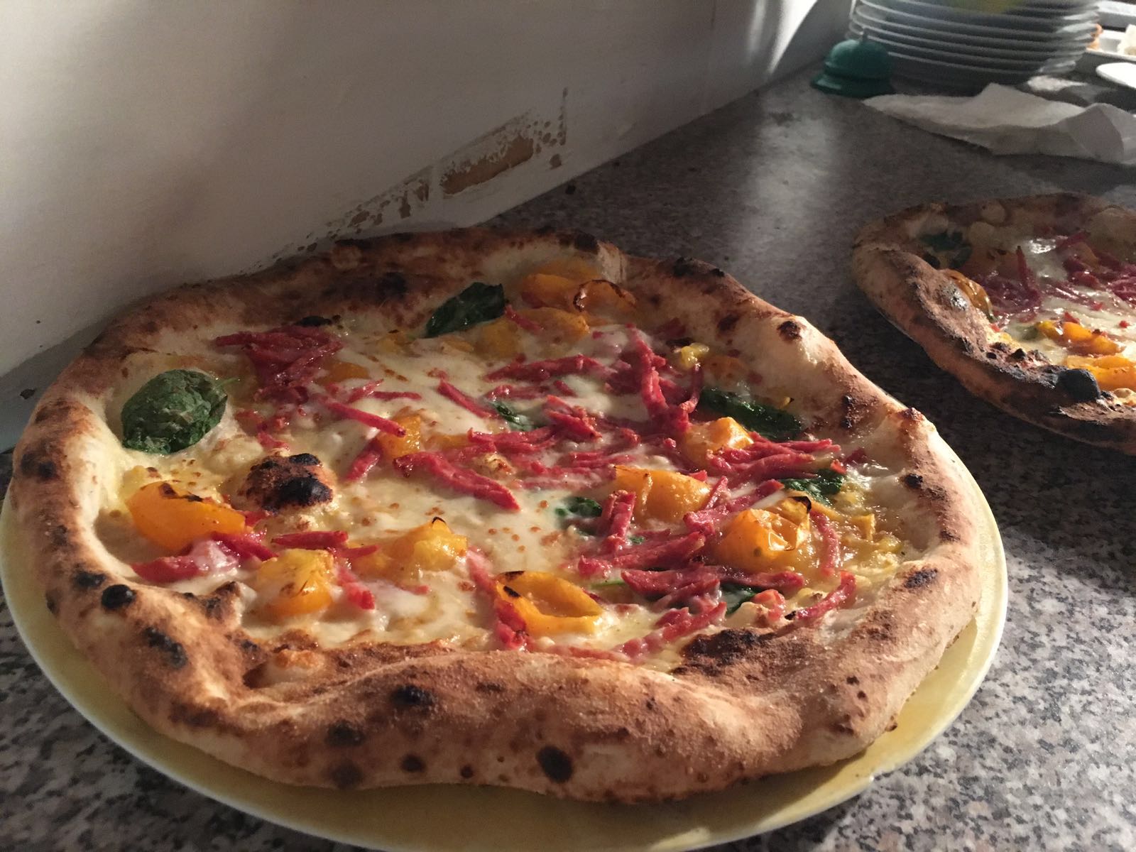 Ivano si è sfidato con il Pizzaiolo Resident Paolo Ghidini, tra i pochissimi a fare pizza di ‘qualità’ in Franciacorta, da quando ha aperto presente sulla Guida Pizzerie del Gambero Rosso. In questo caso i due pizzaioli si sono sfidati a suon di impasti infornati. I due i gusti proposti dal pizzaiolo napoletano erano uno molto classico, la pizza D.O.P. con pomodoro del piennolo grigliato arrivato insieme ad Ivano direttamente dalla Campania, bufala all’uscita, clorofilla di basilico, olio extra vergine d’oliva.