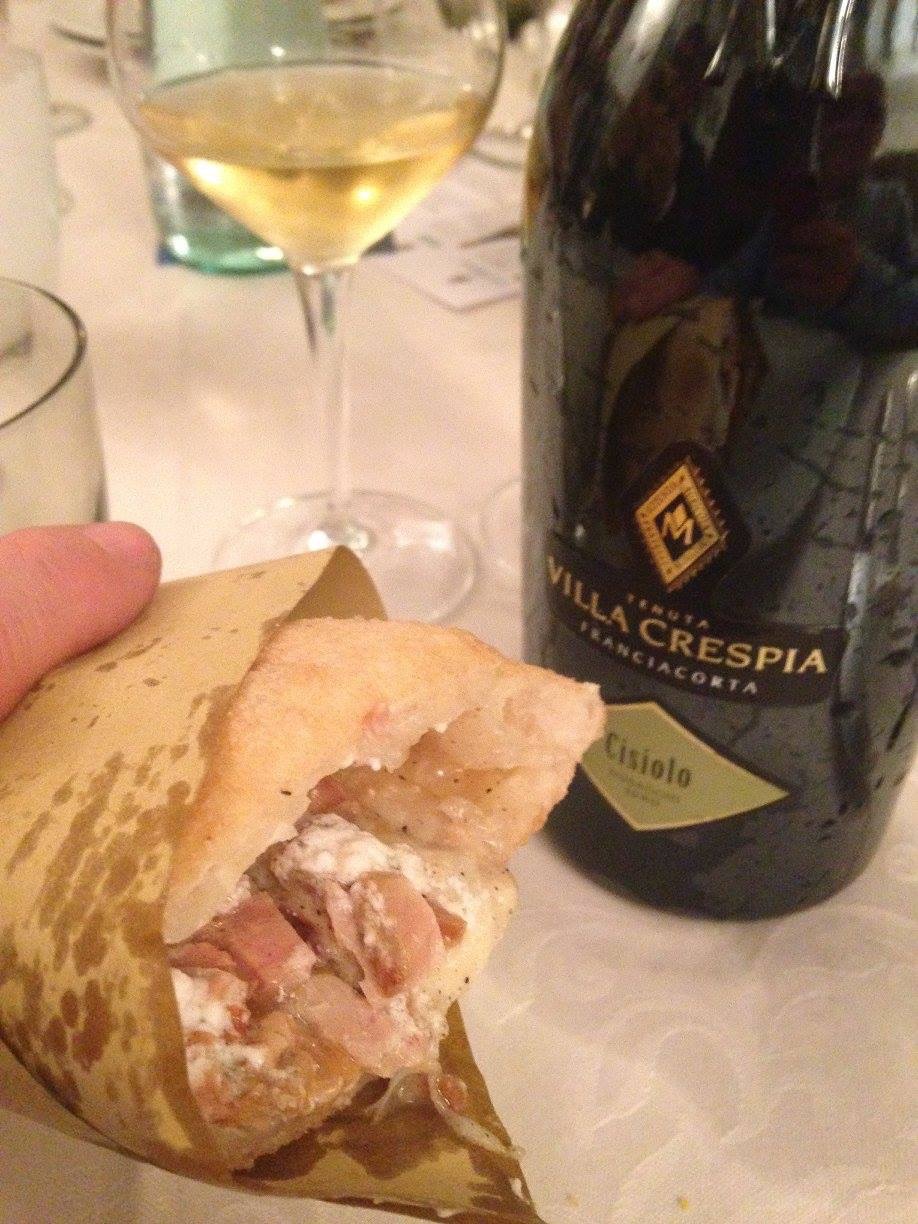 Pizza Fritta di Ivano contro la Pizza Gourmet dello Chef Albini, fiumi di Franciacorta Blanc de noir a Dosaggio Zero firmato Villa Crespia hanno siglato un abbinamento davvero riuscito. La serata ha alternato pizze fritte a pizze gourmet a si è conclusa alle 2 di notte con la spaghettata per tutta la brigata di cucina, sia franciacortina che ischitana.