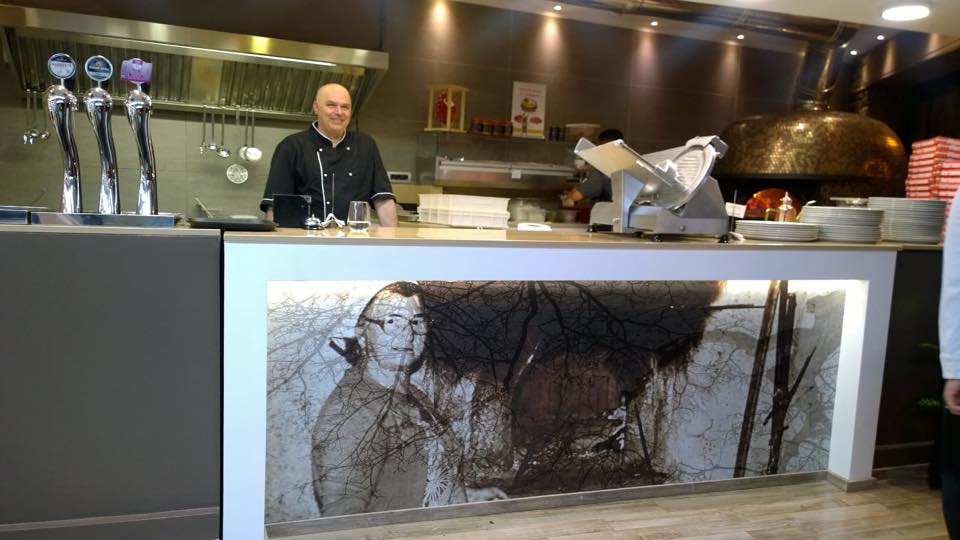Angelo D’Amico, con il pizzaiolo Alfonso Iorio e la piccola Alessia