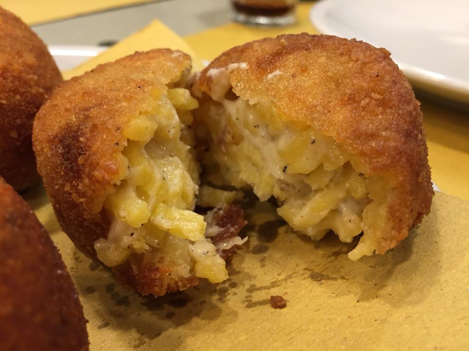 Eseguita alla perfezione e profumata di pomodoro, parmigiano e basilico, la pizza fritta. Ma qui, per chi conosce Mirko e Jacopo, davvero nessuna sorpresa: i fritti sono tutti di buon livello, ottimi i classici supplì (ma anche quello con la pasta cacio e pepe non è niente male); forse meno convincenti le crocchette con speck e provola, dove il sapore delle patate si perde un po’ troppo.