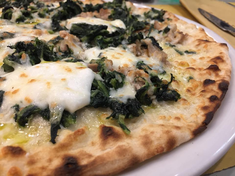 La pizza del giorno speciale “numero 3” che abbiamo trovato speciale lo è per davvero: bufala artigianale di Amaseno ricca e sontuosa (come per gli altri formaggi e salumi il rifornimento si fa da ProLoco DOL di Vincenzo Mancino), con il lieve amarognolo della cicoria ripassata, il grasso buono della fantastica porchetta di Bernabei e – a completare – un olio della Tuscia notevole. Davvero una piccola grande goduria.