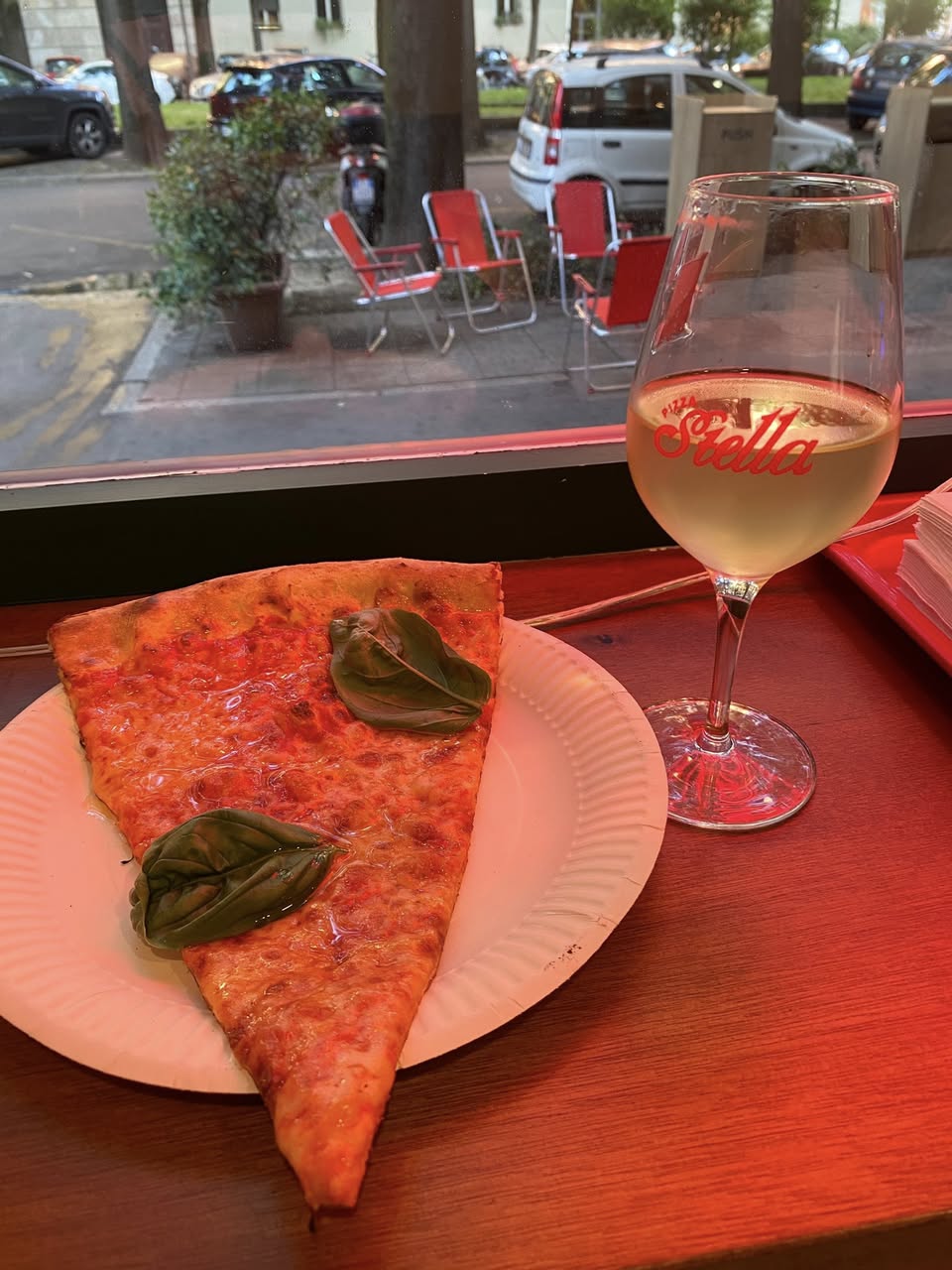 E’ uno degli epifenomeni del momento a Milano, dove per eccesso di offerta vive e prospera chi comunica il proprio locale nel modo più adatto affinché la sua immagine venga venduta attraverso le stories su Instagram e su Tik Tok dell’uomo e della donna qualunque. E, i fondatori e soci di Pizza Stella sono gli stessi di Bar Paradiso, un piccolo bar di vini naturali e lievitati bio dove un calice costa 9€ e un sorriso un tanto al chilo, vista la negazione all’accoglienza del personale. Ricambiata, però, dalla fighezza e dall’hype della clientela, tutta afferente al mondo della moda e della comunicazione, convogliata nel locale dalle conoscenze dei soci, i quei si muovono giustappunto nello stesso ambiente, della moda e dell’influecing.