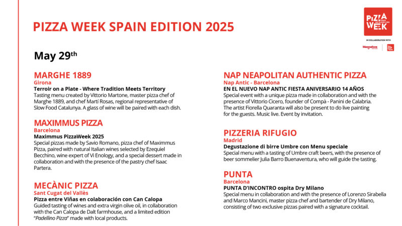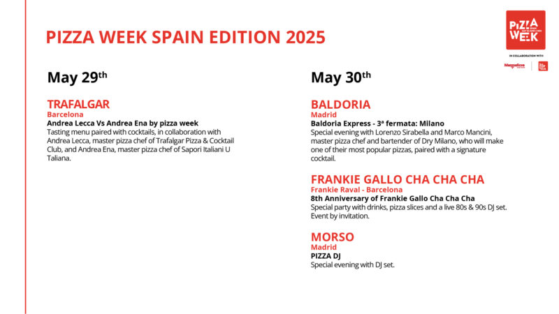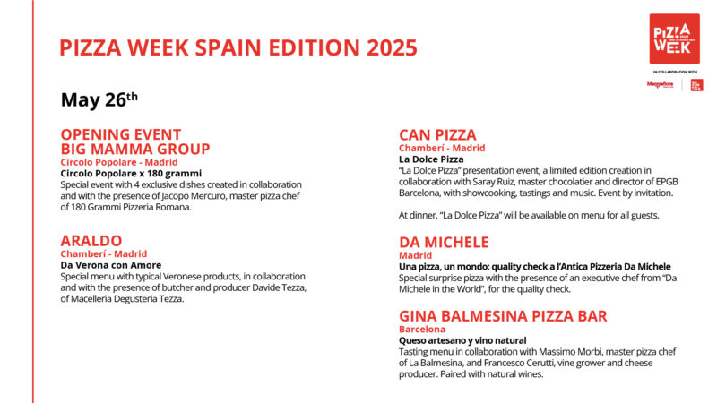 A questo link è possibile consultare il programma completo del Pizza Week Spain Edition 2025: