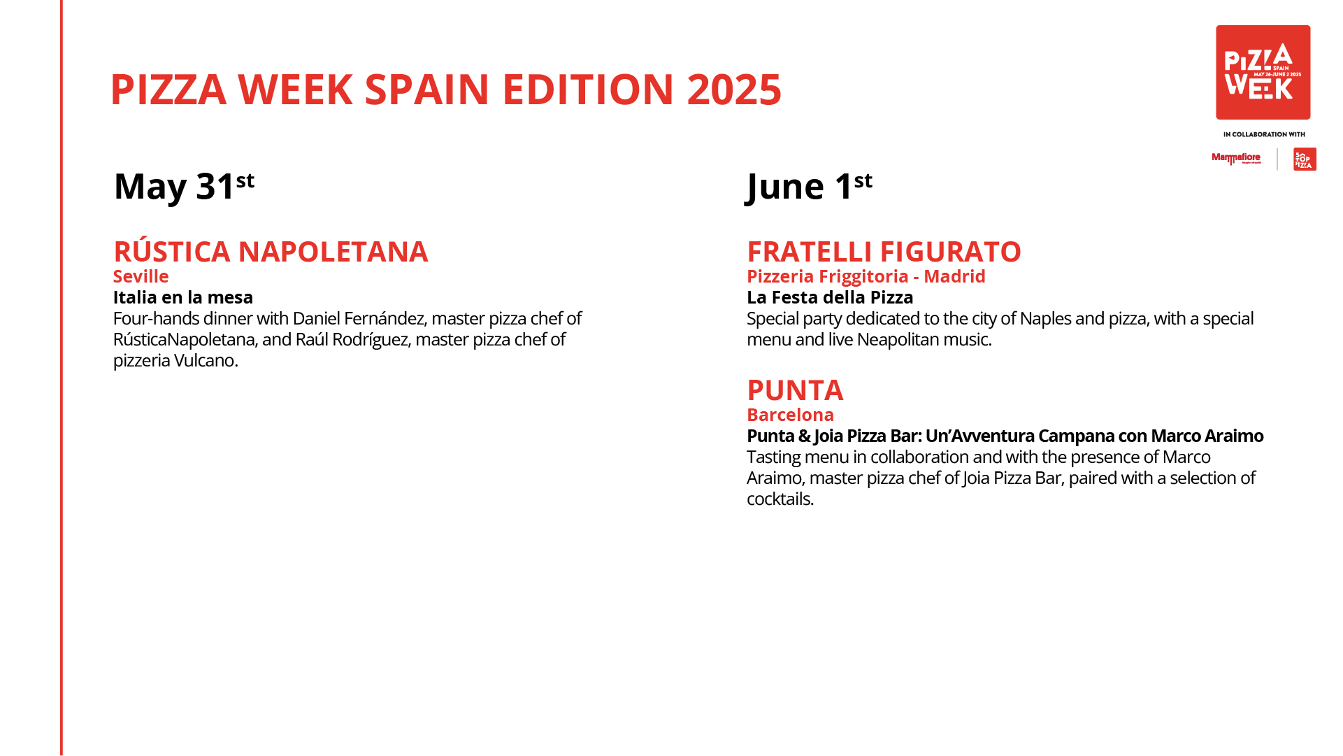29 13/5/2025 Torna a: Pizza Week Spain Edition 2025: dal 26 maggio al 2 giugno ← PrecedenteSuccessiva →