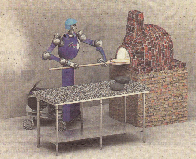 Tutto avviene facendo indossare una body suit robot mentre il pizzaiuolo è intento al proprio lavoro.