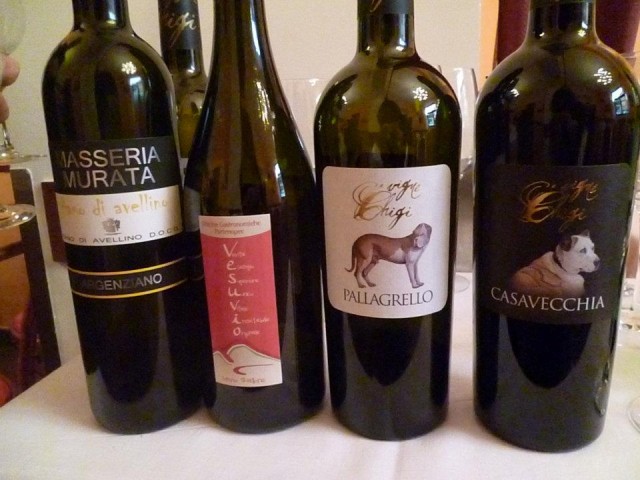 In abbinamento alle pizze dei Di Porzio, 3 vini, oltre un aperitivo con il Fiano di Avellino 2009 di Masseria Murata di Castelfranci servito per il benvenuto. Goccio affidabile, equilibrato e di sicuro effetto che ho appena il tempo di annusare: